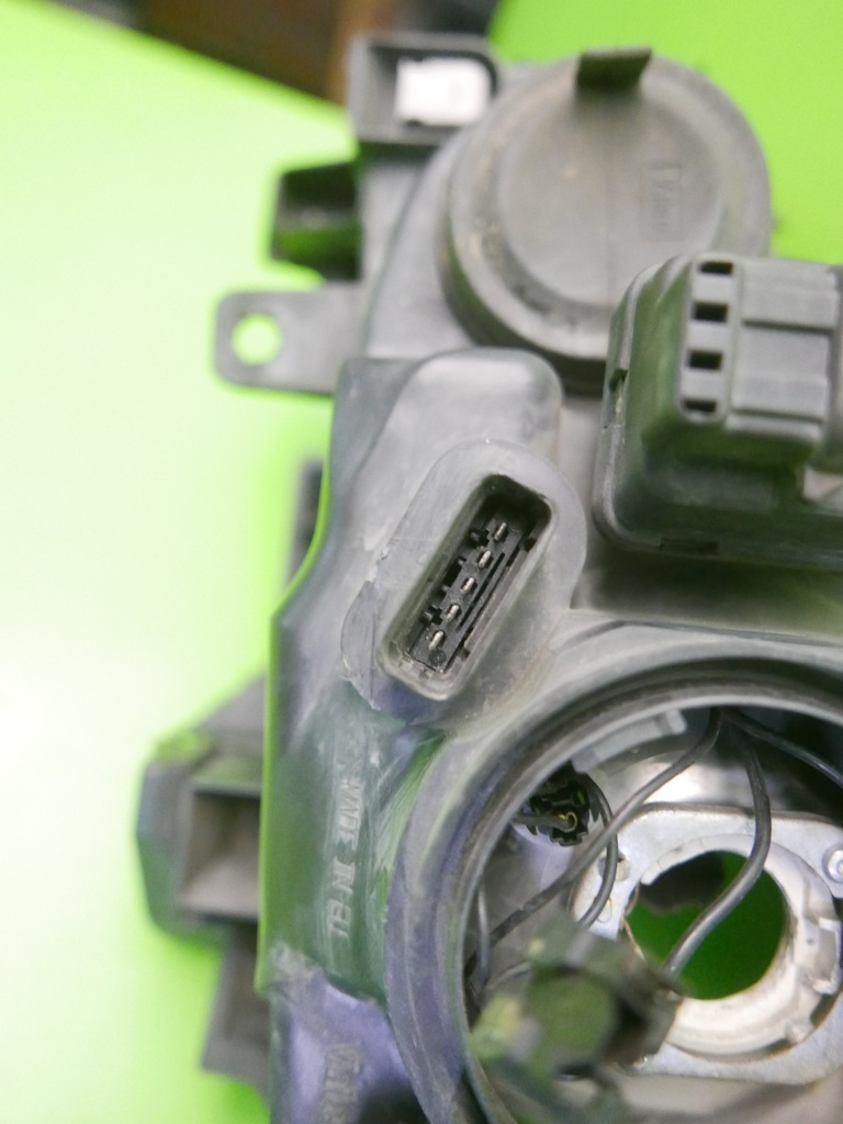 SKICK: Glaset är smutsigt från insidan, ett fäste saknas och ett är limmat, färgmärkt på bilderna. Sprucket förarfäste, löst element i mitten av lampan. Återanvändbar begagnad del.