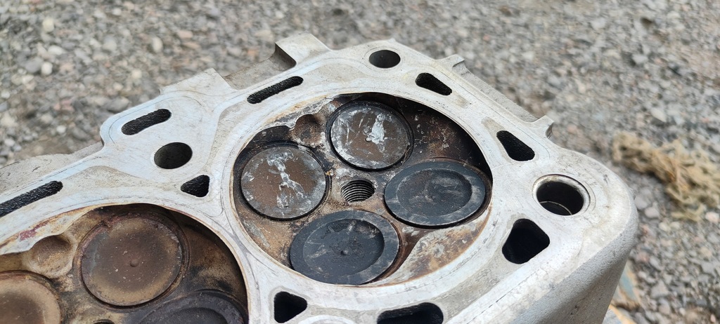 Huvudet är komplett som visas på bilderna, två ventiler har skador från kolven som visas på bilderna