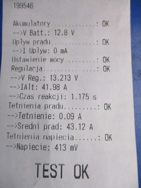 Beskrivning: DELCO, inga markeringar, 45A, med spÀnningsregulator, med vanlig remskiva, testad pÄ ONYX TMA-enhet, testresultat pÄ bilden (D,1.3förgasare,3dH/B) - B-kvalitet && OPEL KADETT D 1.3 ALTERNATOR DELCO 45A TESTAD