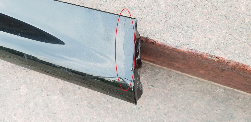 Lamellen är något skadad på platsen markerad nedan, den har inte spruckit, inte lagad