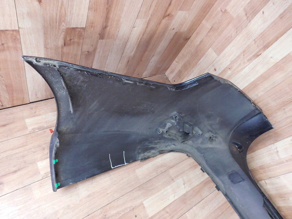 Stötfångaren är i bra skick, har en sprucken spärr, behöver målas om.