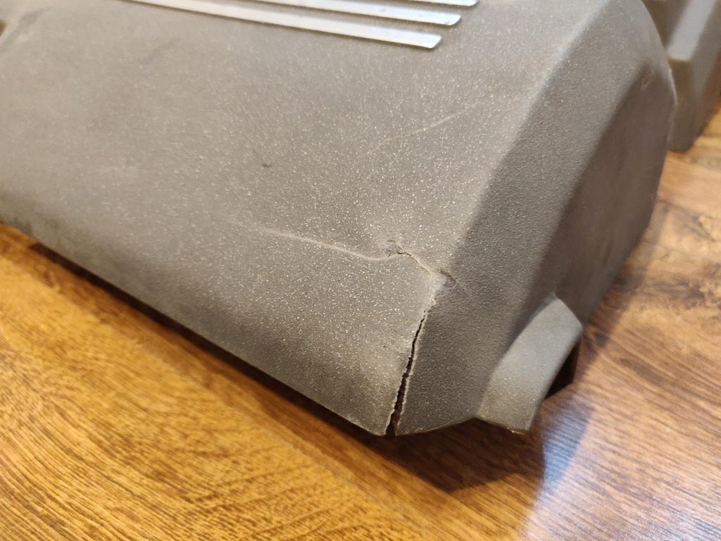 Volvo V8 motorkåpa. Kåpan tas bort från S80 men ska även passa XC90. Den främre delen av omslaget har en liten spricka i nedre högra hörnet, som syns på bilden.