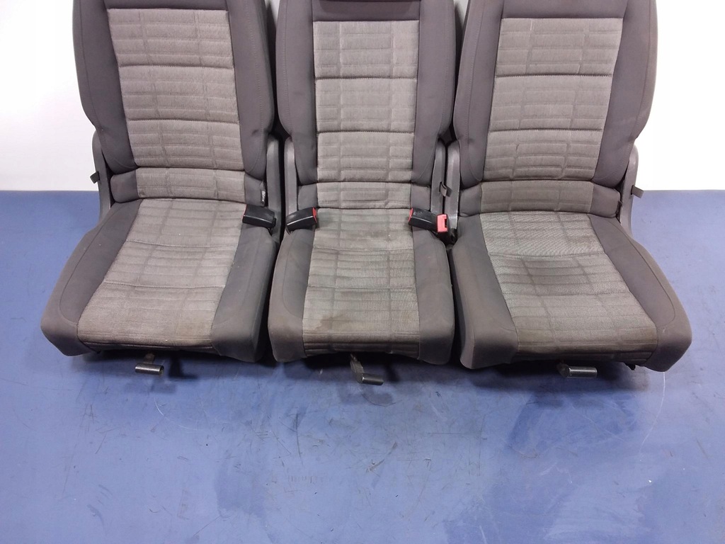 Beskrivning: tredje raden säten med bälten, bakre soffa, grå klädsel med en grå och vit rutig inlägg, synliga spår av användning, tvättbara, ej skadade, -kvalitet A && VW TOURAN OCH SOFFA OCH SITTEN BAK TREDJE RADEN